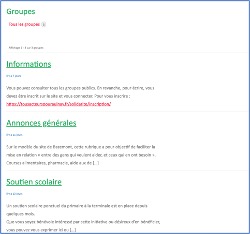 Vous pouvez librement consulter les informations de chaque groupe public en cliquant sur son titre (en vert)